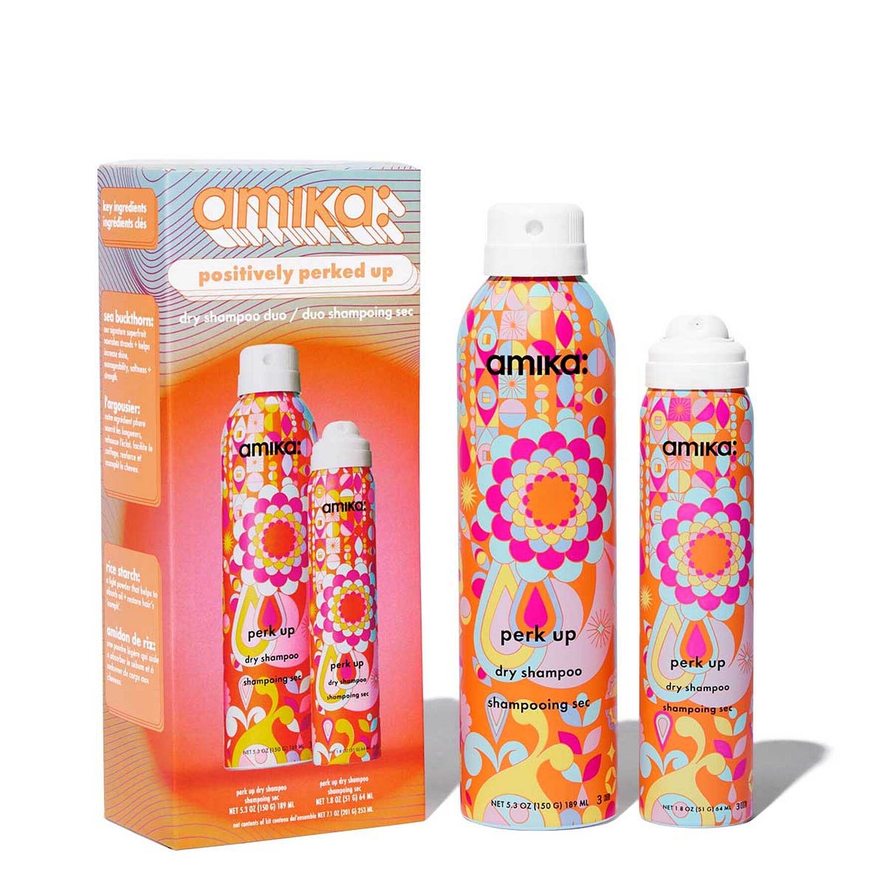 Frisk opp hårstråene med en tørrsjampoduo med Perk Up Dry Shampoo i full størrelse og reisestørrelse for forfriskede røtter og en boost av umiddelbar fylde hjemme og på farten.