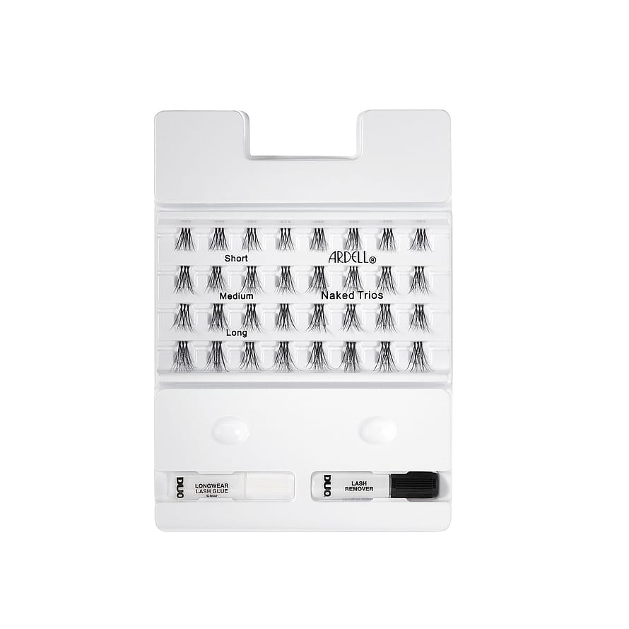 Naked Trios kombinerer tre individuelle vipper på et fint og lett Invisiband for tre ganger raskere påføring av vippene! Bredere vippebase gjør dem lettere å gripe med pinsett. En blanding av korte, mellomlange og lange lengder lar deg kontrollere resultatet. Forbedre hele vipperaden eller fyll på hvor du vil. Bygg opp looken din fra dag til natt. Fyll ut hull, fremhev, tilpass med forskjellige lag og lengder. Naturlig eller knockout, diskré eller fantastisk, under eller over egne vipper – du bestemmer. Alt du trenger for vakre vipper, på din måte – varer i opptil tre dager! Veganske.