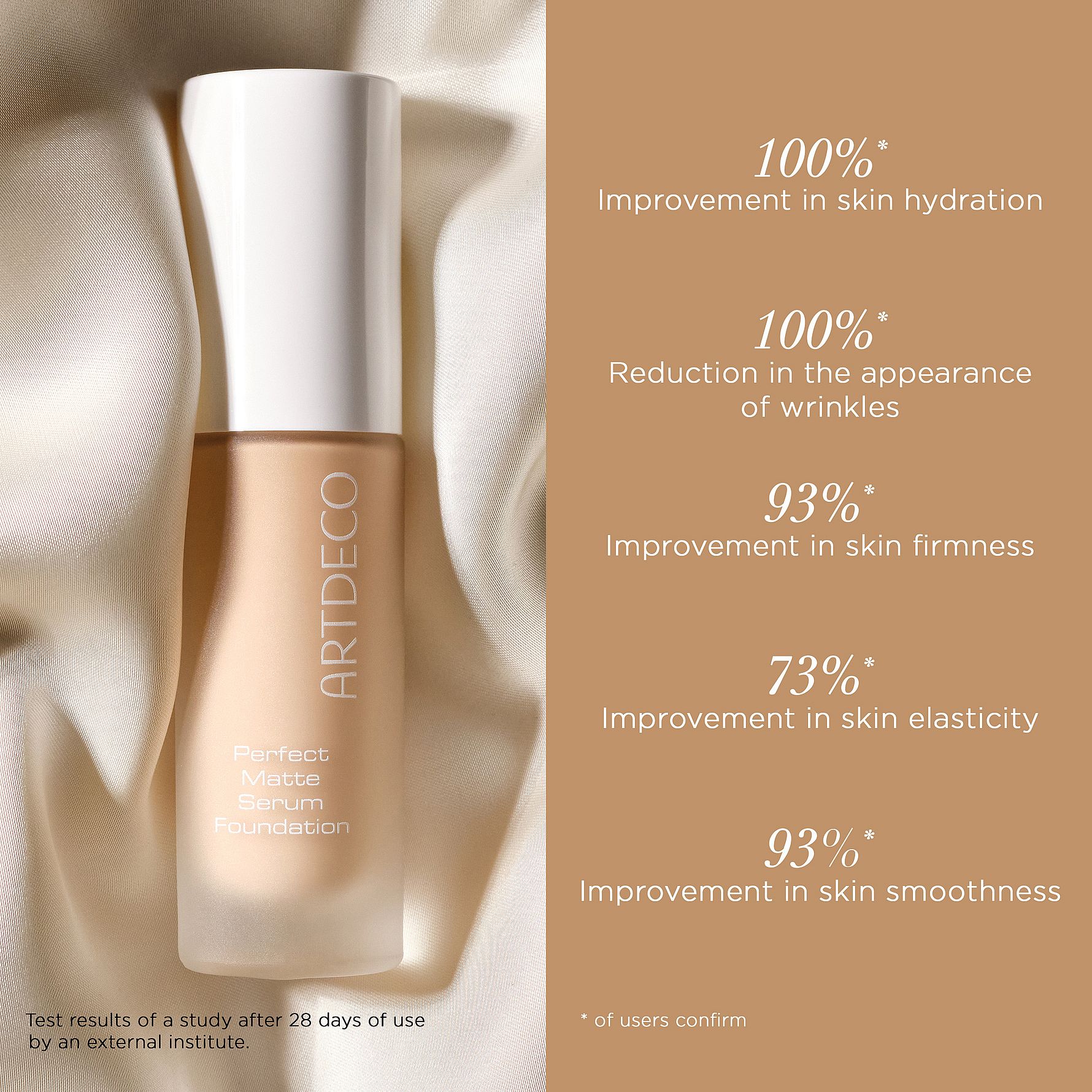 Ingen grunn til å velge mellom hudpleie og sminke lenger! Med denne naturlige, fløyelsmatte foundationen vil huden din føles pleiet og ivaretatt hele dagen. Den flytende formulaen absorberes raskt og smelter inn i huden. Den er perfekt for blending, med god dekkevne for en jevn finish. Den matte, men strålende finishen er ideell for alle hudtyper—spesielt dehydrert, normal og kombinasjonshud. Formulaen inneholder Vita Rose, stamceller fra hybridte-rosen, kjent for sine hudfornyende egenskaper og gir en fastere, mer elastisk hud. Vita EthoSense, ett naturlig ekstrakt fra aubergine stamceller, hjelper til med å roe ned og styrke en stresset hud.