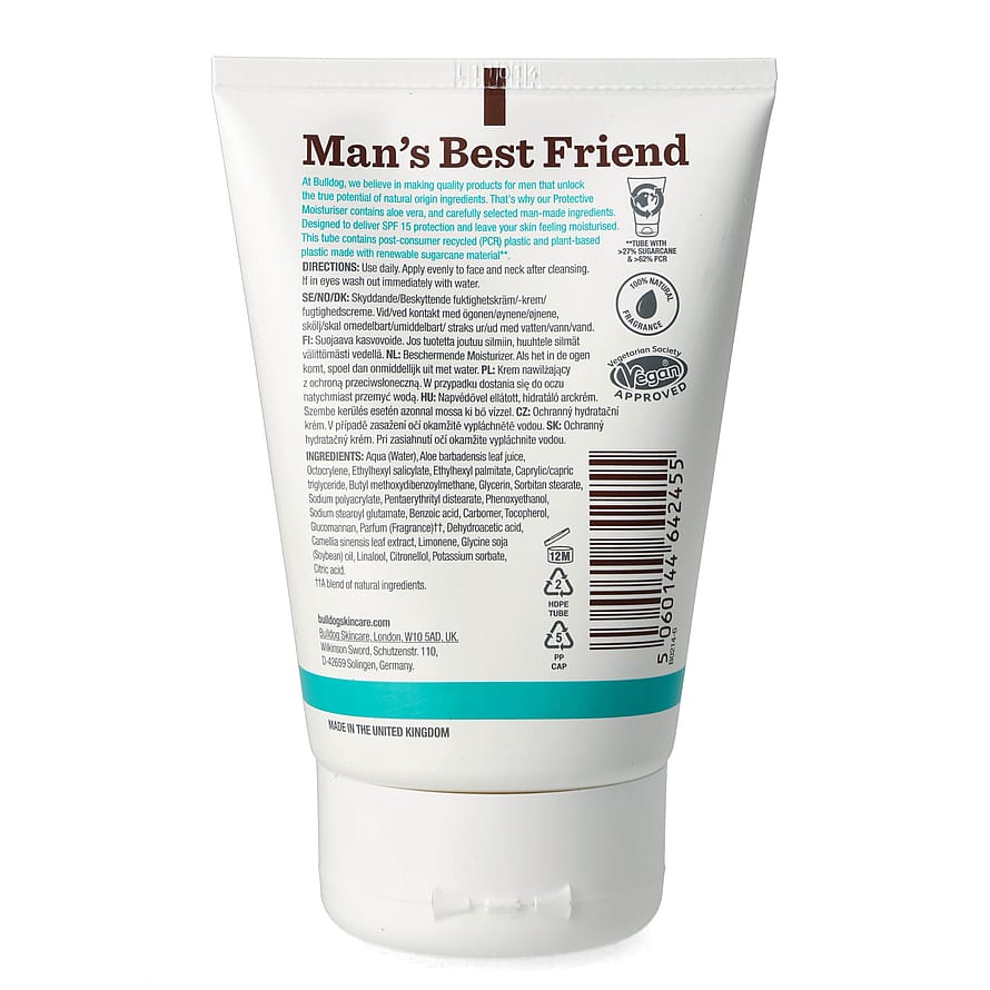 Bulldog Protective Moisturiser gir huden din rikelig med fuktighet og beskytter huden din mot UV-stråler med solfaktor 15. Dette er fuktighetskremen for han som liker seg ute i solen. Kremen har en deilig blanding av oljer som gir en naturlig og frisk duft. Kremen trekkes raskt inn i huden uten å gi en fet og klebrig følelse.