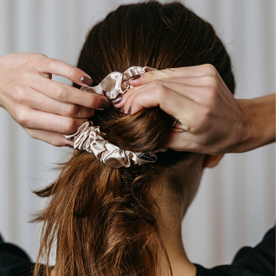 Silkes-scrunchien er skånsom mot håret, minimerer slitasje og motvirker frizz. Perfekt til både hverdag, fest og til og med når du sover.