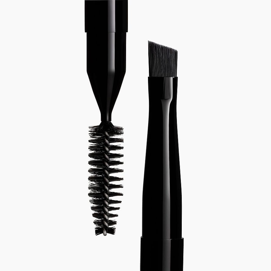 LES PINCEAUX DE CHANEL kostene gir alle tilgang til makeupartist teknikker. Deres enkle, men funksjonelle design gjør dette til en kolleksjon av ønskelig tilbehør på farten. Med et utvalg av syntetisk bust som er like myke som de er spenstige, beskyttet av et sortlakkert etui, bevares de elegant over tid. DUAL-ENDED OW USH er designet for å børstle, fylle ut og omdefinere øye ynene. Et viktig verktøy for å fremheve personligheten til øynene ved å forme ynene forsiktig: spiralbørsten temmer dem, mens den koniske børsten fyller dem ut og omdefinerer med et øyen ynspudder.