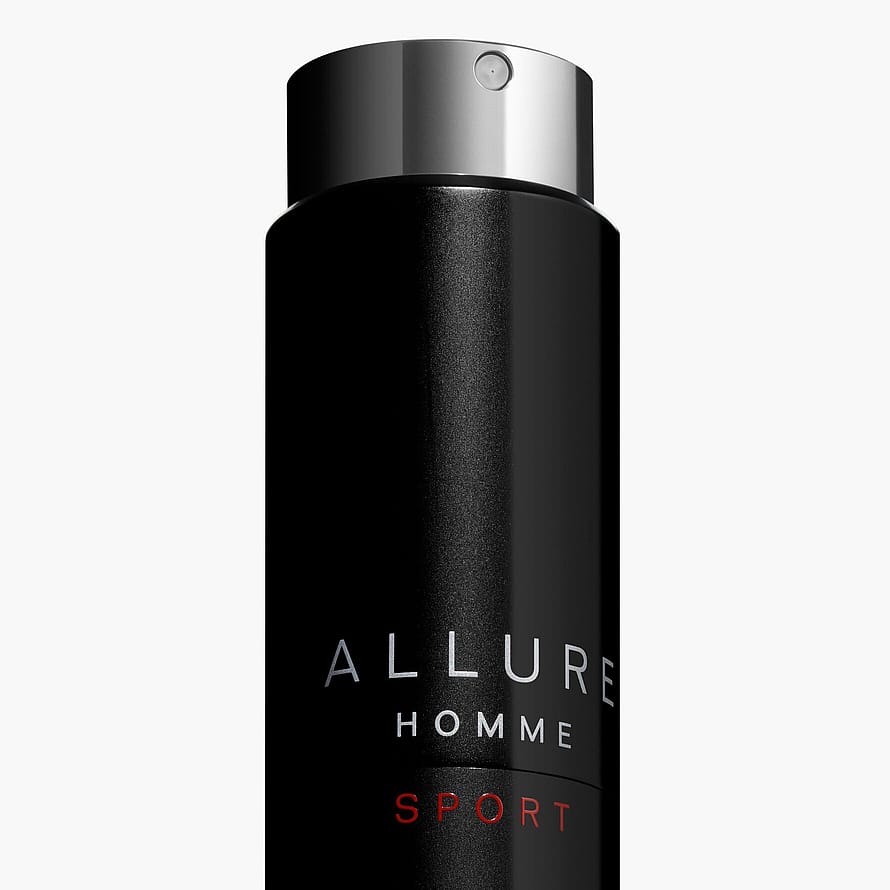 Frihetens tiltrekning. En elegant og raffinert sammensetning. En frisk sensuell duft som forsterker duften av bar hud i friluft. ALLURE HOMME SPORT Eau de Toilette finnes i en praktisk reisespray som du kan ha med deg overalt.