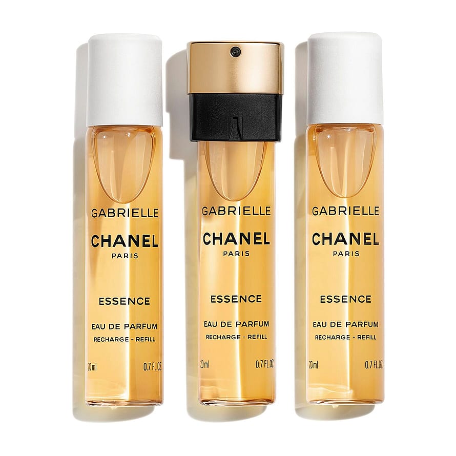 En floral, solfylt, vellystig tolkning komponert av Olivier Polge, CHANELs in-house Perfumer-Creator. Inspirert av Ga ielle Chanel, er GA IELLE CHANEL ESSENCE duften for en kvinne som er oppmerksom på sine behov og sier hva hun mener. En strålende kvinne som virkelig skinner når hun fullt ut uttrykker sin personlighet. Sett med 3 GA IELLE CHANEL ESSENCE TWIST AND SPRAY refiller.
