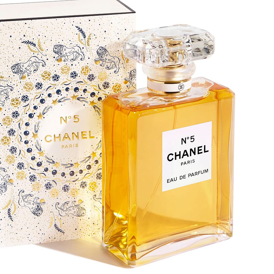 N°5 Eau de Parfum er selve essensen af kvindelighed. En tidløs, legendarisk duft med en aldehydisk blomsterbuket, præsenteret i et perlehvidt etui med glitrende gyldne samt sølvfarvede accenter.