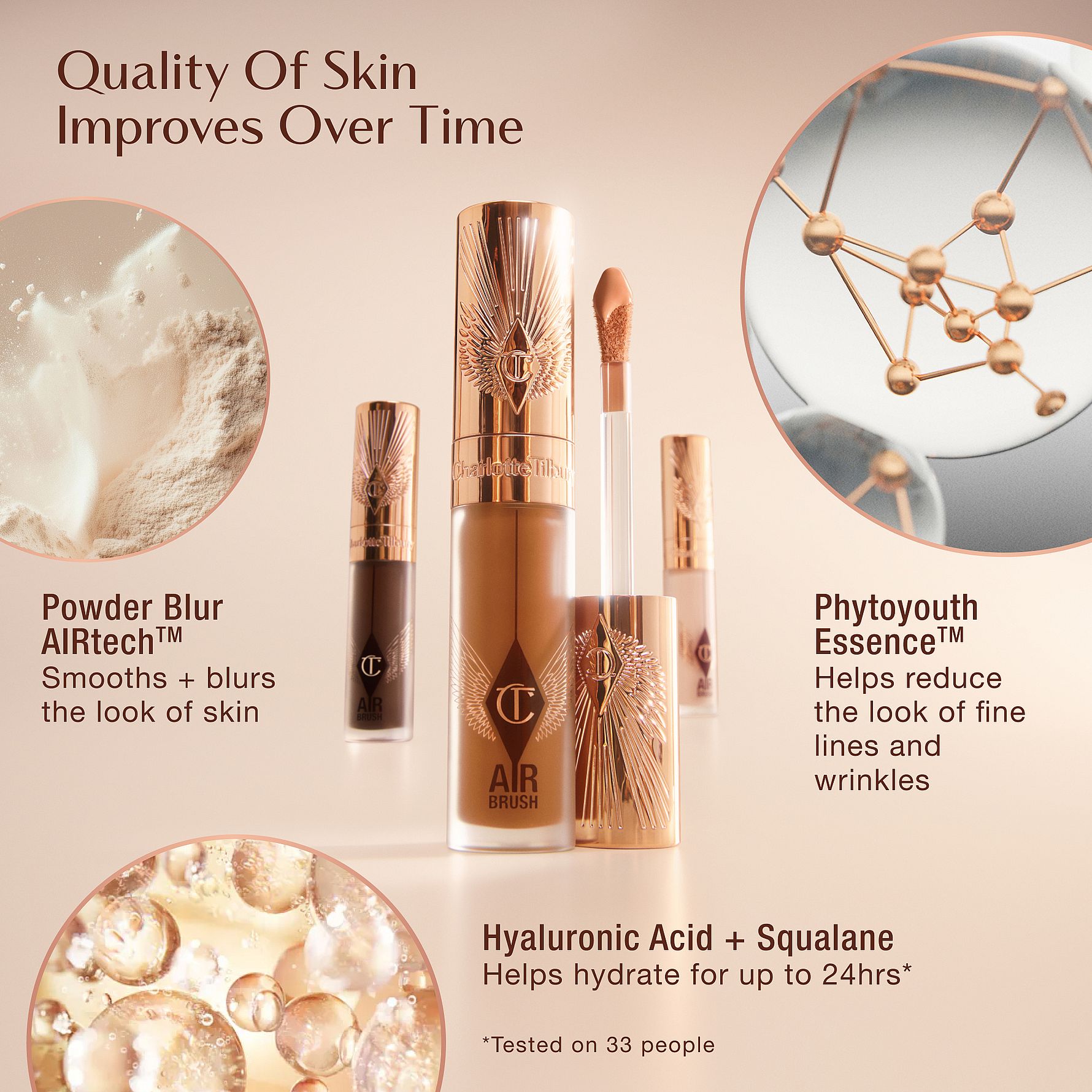 VERDENS FØRSTE Airbrush Flawless Blur Concealer fra Charlotte Tilbury er NYHETEN! FORMEL MED FULL DEKNING OG ELASTISK STRETCH. SUPERLADET med Charlottes SIGNATURE POWDER BLUR™ AIRTECH og AVANSERT HUDPLEIE som gir en UTJEVNENDE, FUKTENDE, VEKTLØS AIRBRUSH FLAWLESS EFFECT og OPPTIL 24-TIMERS* LANGVARIG RYNKEFRI EFFEKT.