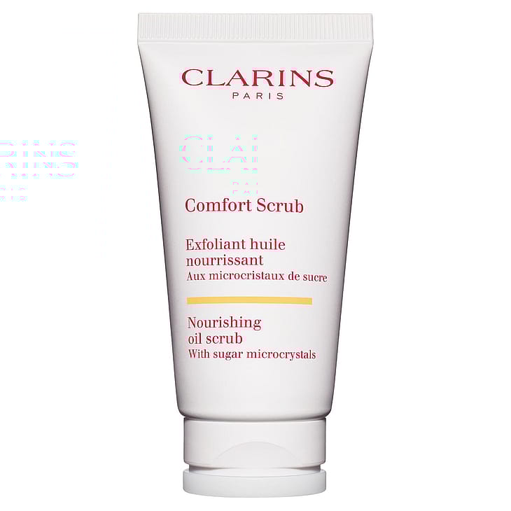Ravitseva kuorintavoide, joka antaa iholle miellyttävän ja pehmeän tunteen yhdessä vaiheessa. Clarins Comfort Scrub -geeliöljykoostumus sulautuu iholle ja kuorii hellävaraisesti luonnollisilla sokerikiteillä. Se poistaa kuolleita ihosoluja sekä kasvoilta että huulilta kosteuttaen samalla ihoa ja antaen silkinpehmeän tunteen. Täydellinen kuivalle iholle – yhden käytön jälkeen 98 % koki, että iho tuntui pehmeältä, ja 87 % koki, että huulista tuli pehmeämmät.*