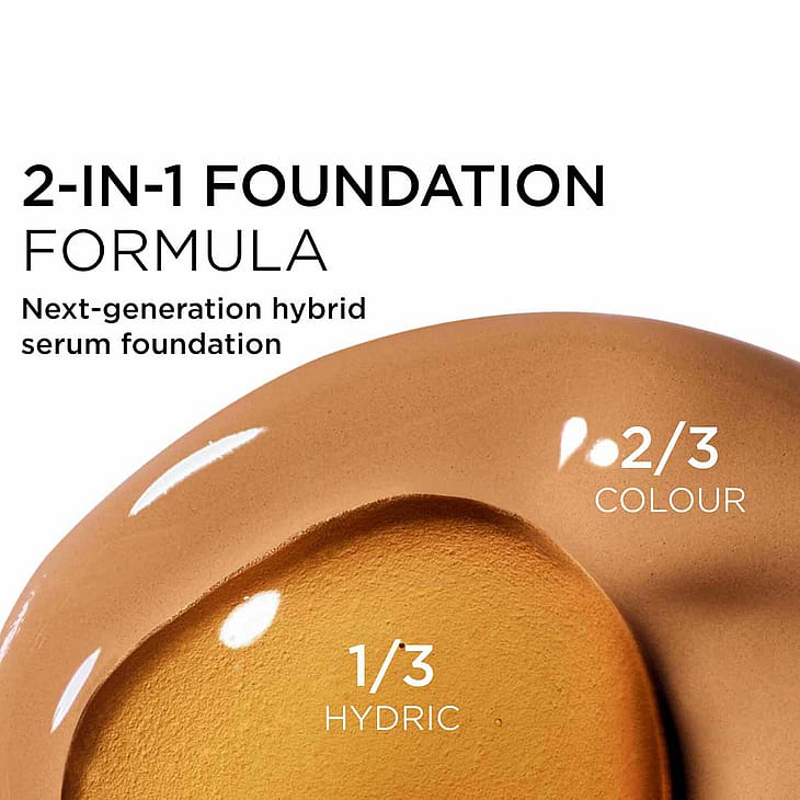 En neste generasjons hybrid serum-foundation, hvis banebrytende kombinasjon av sminke og hudpleie tilbyr et nytt nivå av ungdommelig glød. Takket være den justerbare bryteren gir den vektløs, tilpassbar medium-til-full dekning med en strålende, sateng, ikke-oljete finish i 37 nyanser for alle hudtyper og hudtoner.