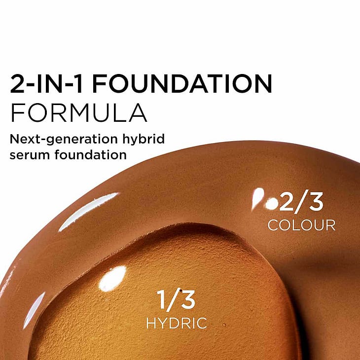 En neste generasjons hybrid serum-foundation, hvis banebrytende kombinasjon av sminke og hudpleie tilbyr et nytt nivå av ungdommelig glød. Takket være den justerbare bryteren gir den vektløs, tilpassbar medium-til-full dekning med en strålende, sateng, ikke-oljete finish i 37 nyanser for alle hudtyper og hudtoner.
