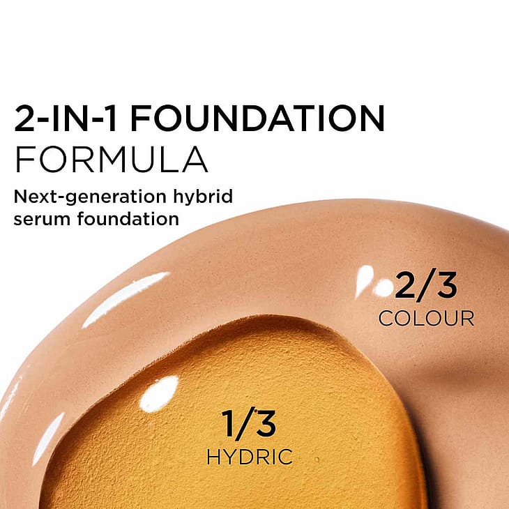 En neste generasjons hybrid serum-foundation, hvis banebrytende kombinasjon av sminke og hudpleie tilbyr et nytt nivå av ungdommelig glød. Takket være den justerbare bryteren gir den vektløs, tilpassbar medium-til-full dekning med en strålende, sateng, ikke-oljete finish i 37 nyanser for alle hudtyper og hudtoner.