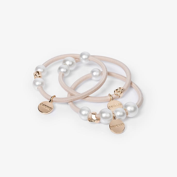 Vår vakre hårstrikk med imiterte perler og våre ikoniske metalldetaljer. Dette produktet er laget i en vintage hvit farge som gir en fin kontrast til perlene.