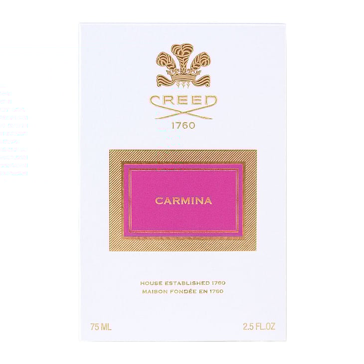 Med inspirasjon fra Henry Creeds moteskissebøker, som ble oppdaget i det private rommet på Avenue Pierre 1 er de Serbie, har Carmina en elektrisk følsomhet som fanger essensen av en dristig og lidenskapelig kvinne. Med kraftig duftslør er Carmina uanfektet dristig og dampende som de fargerike kjolene som inspirerer den. Det voluminøse stoffet i disse kjolene skaper en følelse av storhet og overdådighet, mens duften av Carmina legemliggjør den ultimate heltinnen som er klar til å ta på seg ethvert eventyr. Sort kirsebær og rosa pepper gir modernitet til fiolett og dempet rose. Safran tilfører den gylne varmen, sammen med delikat musk og rav. Til slutt beriker kasjmirtre den luksuriøse treaktige noten som gjør Carmina så fengslende. En av de vakreste duftene fra Creed, Carmina er en sensuell og varm parfyme som vil lede deg på en duftende reise til sanselige steder. Ta deg tid til å nyte opplevelsen og la Carmina minne deg på tidligere eventyr du har hatt og de som ennå ikke har kommet.