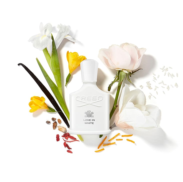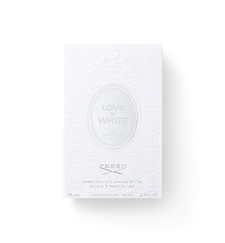 Love in White er blomstret og frisk og et enestående eksempel på en ekte grønn duft. Delikat sjasmin smelter sammen med pudret iris, som kompenserer for en delikat roseblanding, som er pepret mot saftige appelsinnoter, som finnes i kjernen av denne duften. Virvler av sedertre forankrer basen, som forsterker duften av magnolia-blader. Som en sensuell hyllest til kjærligheten, minner denne duften om en delikat vårbris.