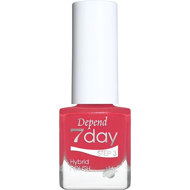 Cool, Fun, Sassy, Bright, Happy - Depend 7day er lakksystemet for deg som er ute etter en neglelakk med superglans, lang holdbarhet og "gel-følelse". Denne hybridformelen holder i opptil en uke, er enkel å påføre og du kan enkelt fjerne lakken med Depend neglelakkfjerner. Du behøver ingen LED-/UV-lampe ettersom lakksystemet tørker i normalt dags-/lampelys. Vegansk formel, inneholder ikke råvarer av animalsk opprinnelse.