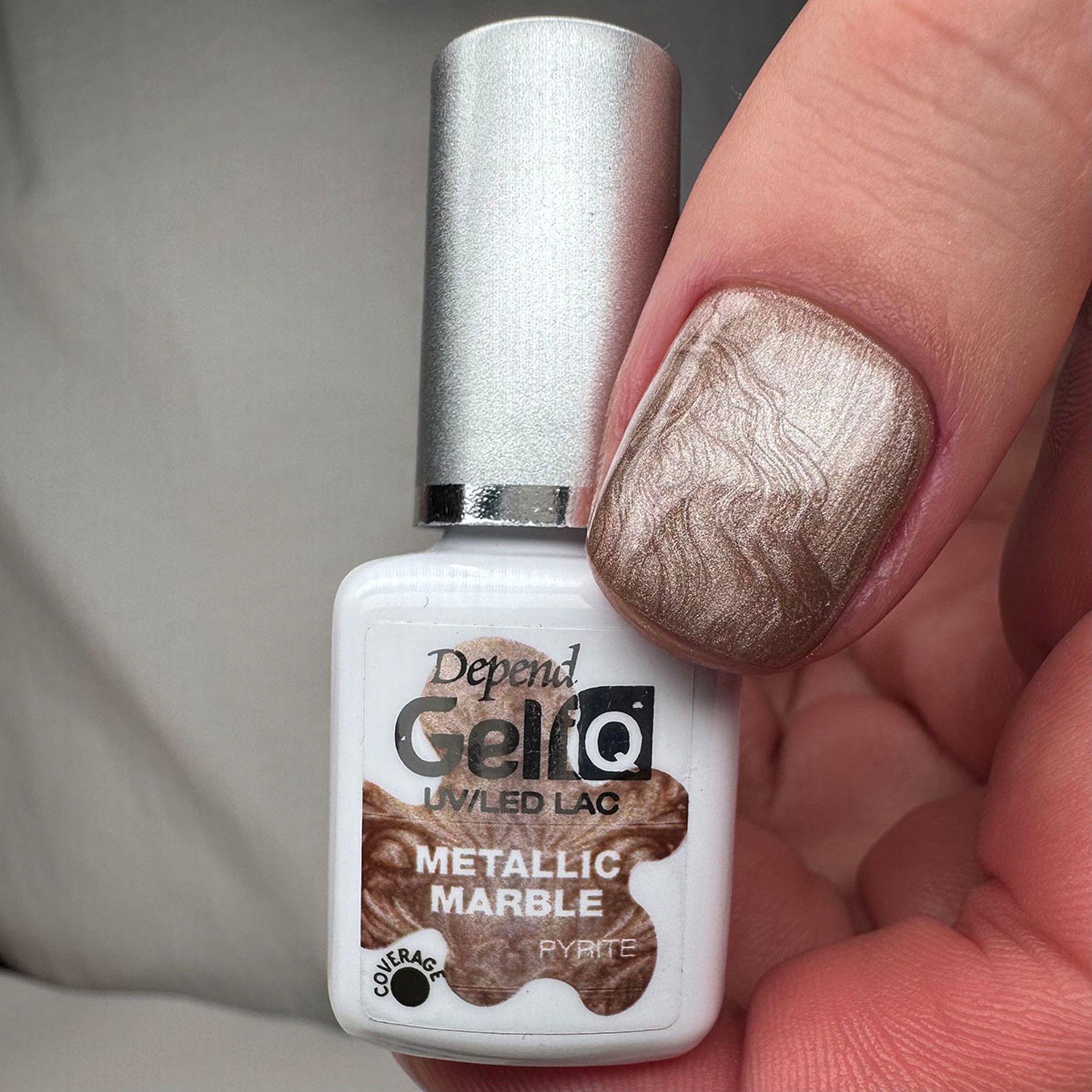Gir forskjellig dybde og nyanse avhengig av valgt farge på Gel iQ under Metallic Marble.