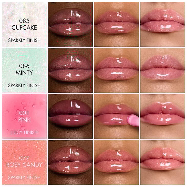 Leppeoljen er tilgjengelig i 16 nyanser og 3 spektakulære glansfinisher: juicy, sparkly og glaze.