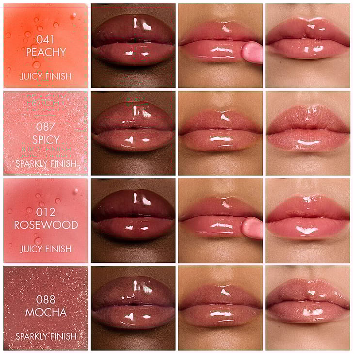 Leppeoljen er tilgjengelig i 16 nyanser og 3 spektakulære glansfinisher: juicy, sparkly og glaze.