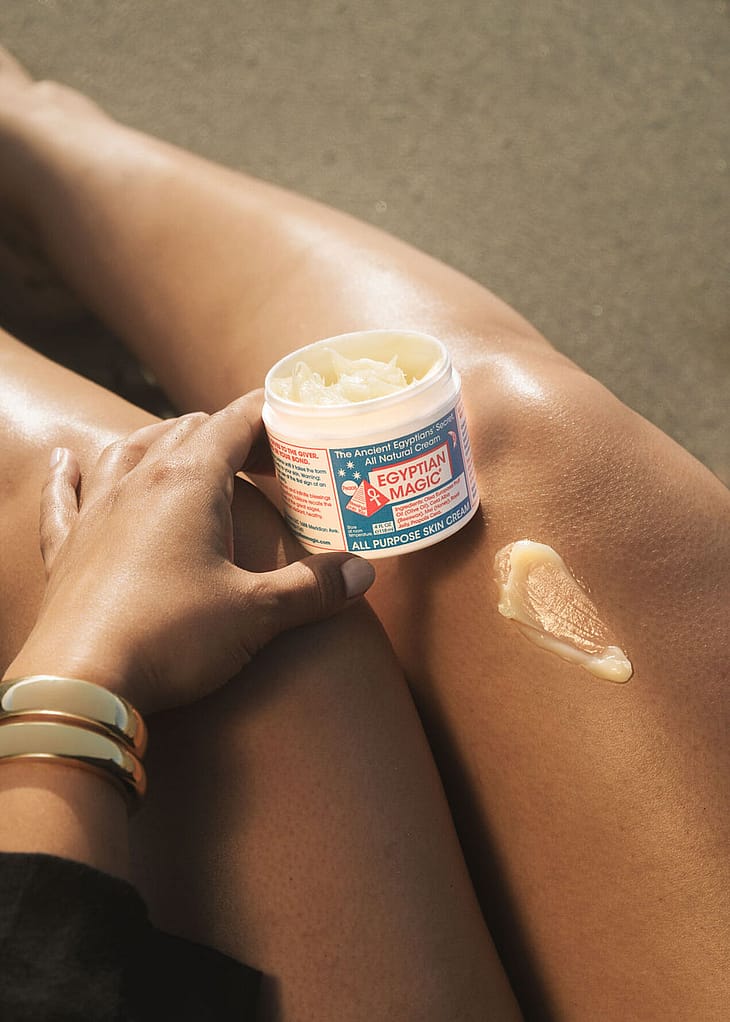 Egyptian Magic Skin Cream er en populær allround-krem. Med sine naturlige ingredienser fukter og lindrer den tørr hud. Kremen har en balsamlignende konsistens som smelter inn i huden og gir umiddelbar fuktighet. Fungerer like godt å bruke som fuktighetskrem, leppepomade, øyekrem eller hårinnpakning. En deilig universalkrem som kan dekke de fleste behov.