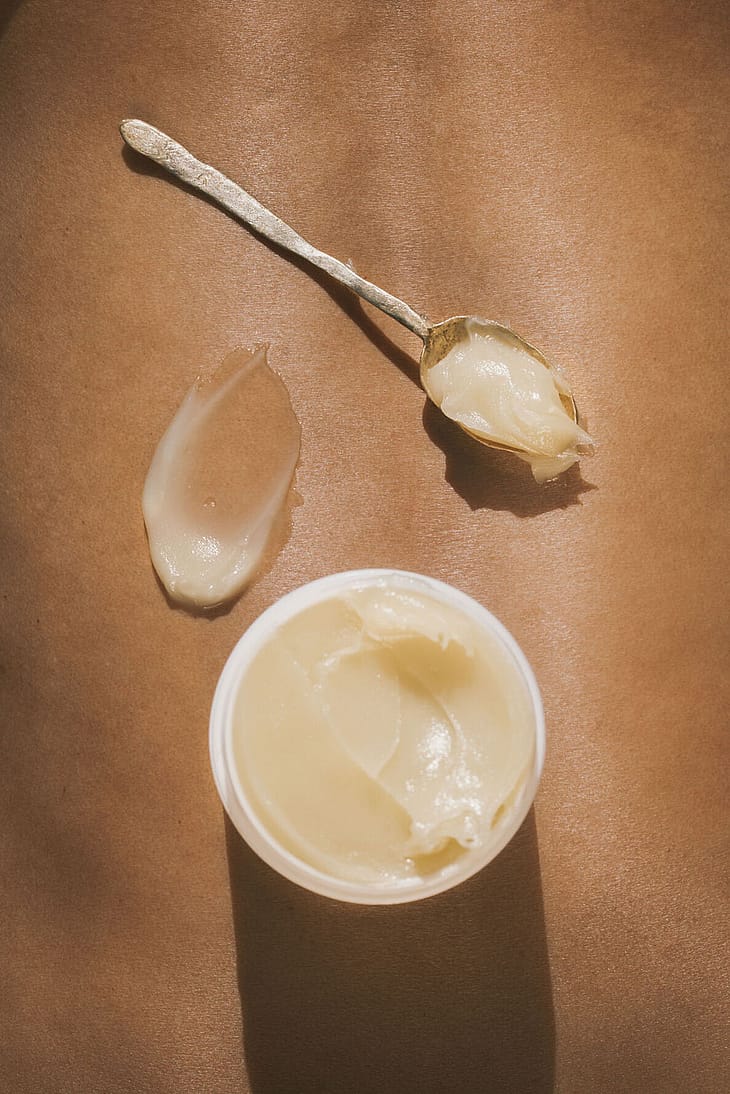 Ta en moderat mengde med fingeren og gni kremen inn i håndflatene til den blir oljeaktig. Påfør på huden.