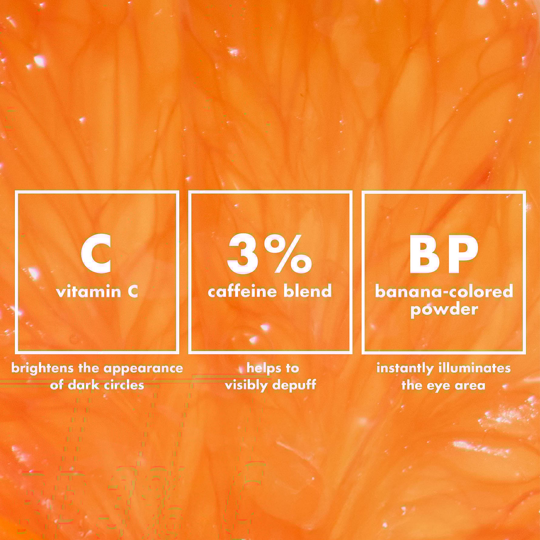 • Lysnende øyekrem beriket med vitamin C, bananfarget pudder og en 3 % koffeinblanding som frisker opp trøtte øyne