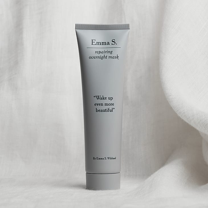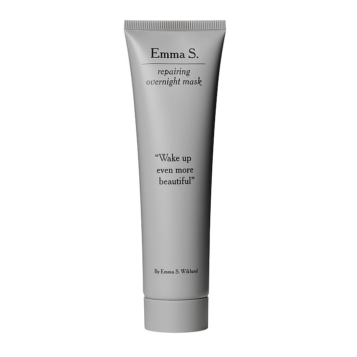 Emma S. Repairing Overnight Mask er en reparerende nattmaske som motvirker synlige tegn på daglig stress. Denne effektive oppstrammende masken virker når du sover, og du våkner opp med en hud som er uthvilt, fuktet, glødende og mer jevn. Masken er kremet, og mykgjør og roer ned huden - samtidig som den reduserer fine linjer. Produsert i Sverige. Vegansk.