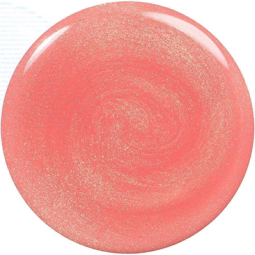 • ‘meet-cute moment’ en korallfarget neglelakk i transparent rosa med røde undertoner og perlemor i gull.