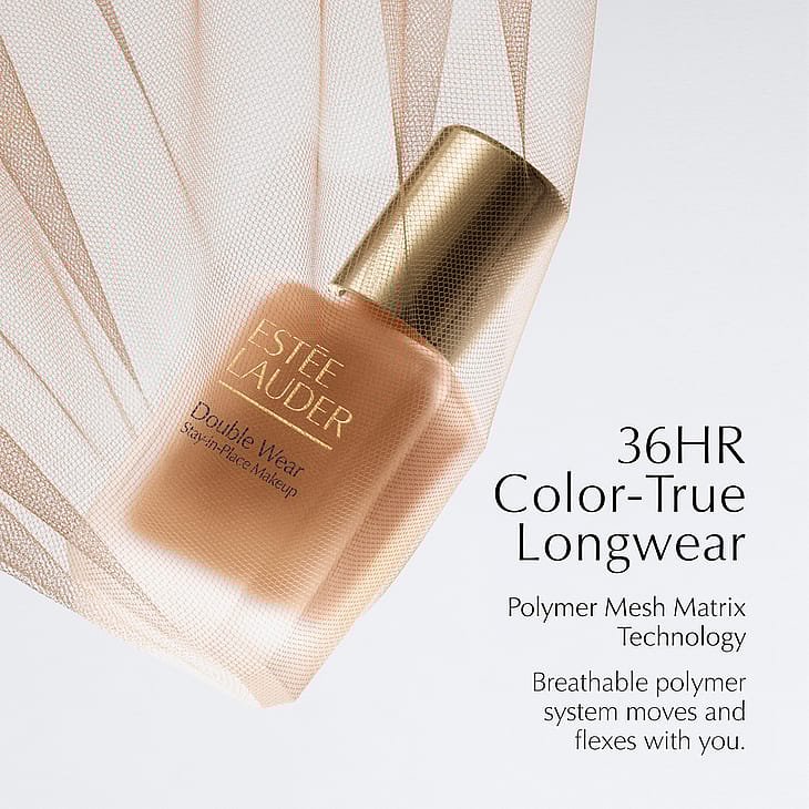 Denne foundationen gir en vakker og naturlig finish, jevner ut hudtonen, skjuler urenheter og har en byggbar medium til full dekning. Finnes i 60 globalt med kalde, nøytrale og varme undertoner. Double Wear Foundation er vannfast, slik at den ikke endrer farge, ikke gnis utover og ikke setter merker på klær. Den gir huden rikelig med fukt og farge som holder i hele 24 timer – uansett stress og aktivitetsnivå.
