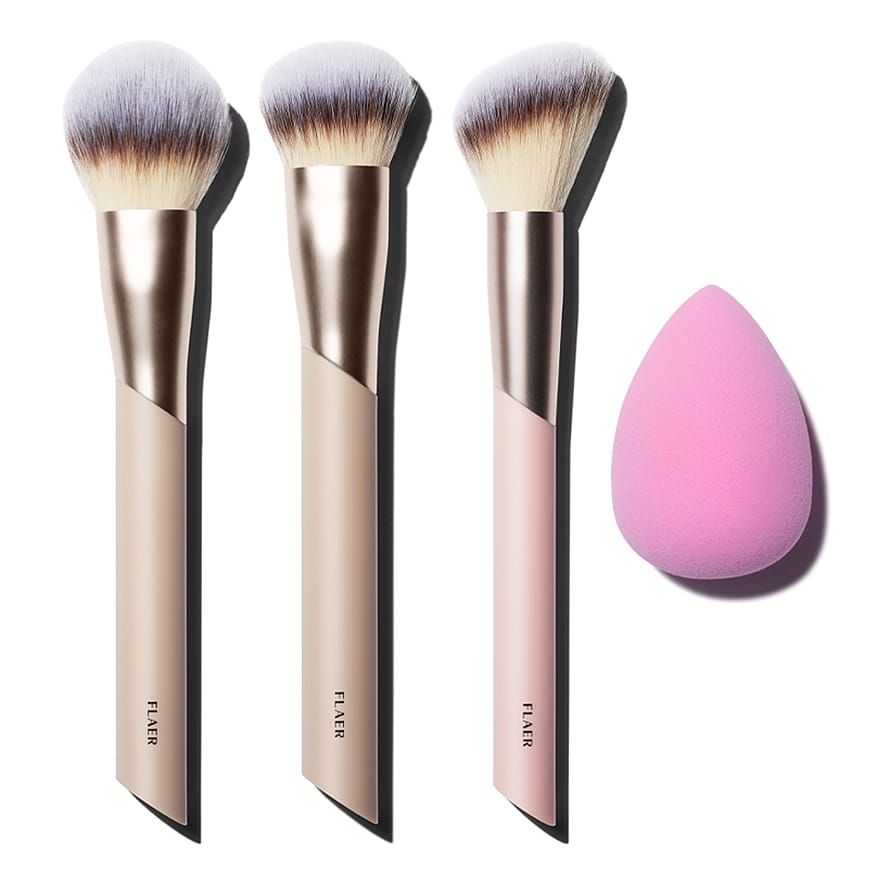 Sett med verktøy perfekte for makeupbasen. Kostene passer like godt til kremprodukter som til makeup i pudderform. Alle koster fra FLAER har syntetisk bust som gir supermyk påføring, og er produsert av resirkulert plast og aluminium.