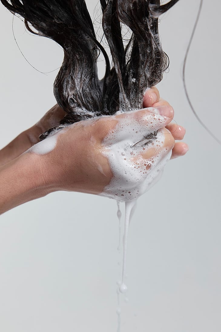 2. Ta en teskje WASH 01 sjampo og gni opp et lett skum mellom håndflatene.