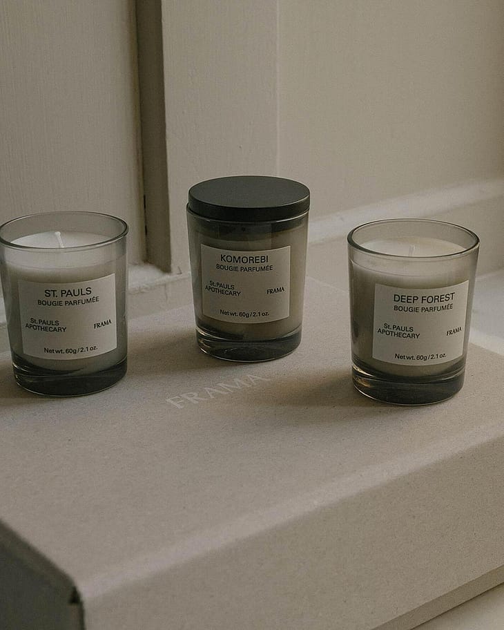 Skap stemning i omgivelsene dine med beroligende og fengslende dufter. Dette Duftlys-settet inneholder tre av FRAMAs bestselgende 60 g duftlys — St. Pauls, Komorebi og Deep Forest.