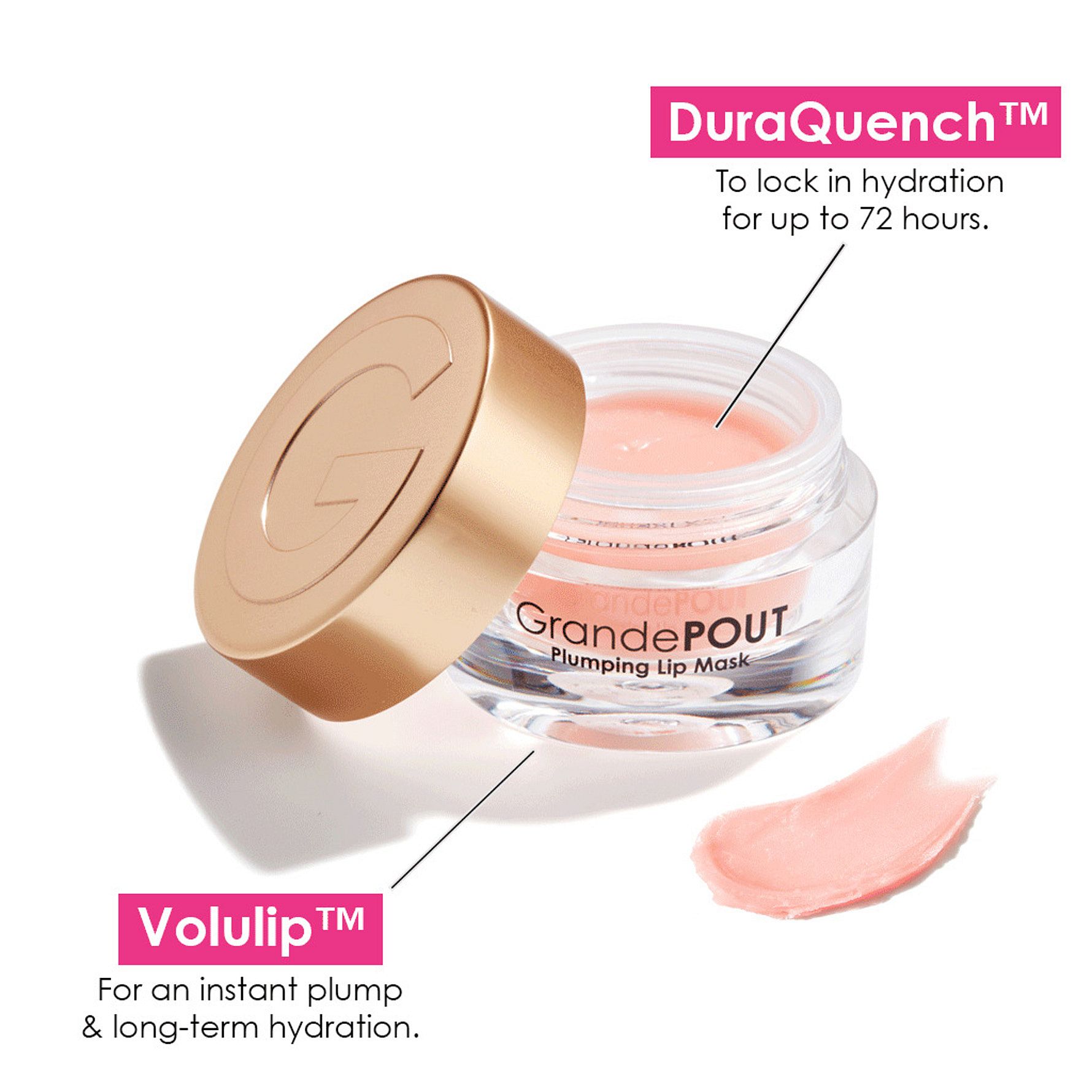 Få fyldige og silkemyke lepper med GrandePOUT™ PlumpingLip Mask! Dette 2-i-1 produktet er tilsatt nøkkelkompleksene Volulip™ & DuraQuench™. Volulip ™ fyller leppene med fuktighet for å redusere linjer og rynker, mens det intelligente fuktighetskomplekset, DuraQuench ™, danner et strukturelt lag på leppene for å bidra til å forsterke hudens naturlige barriere, og låser fuktigheten i opptil 72 timer!