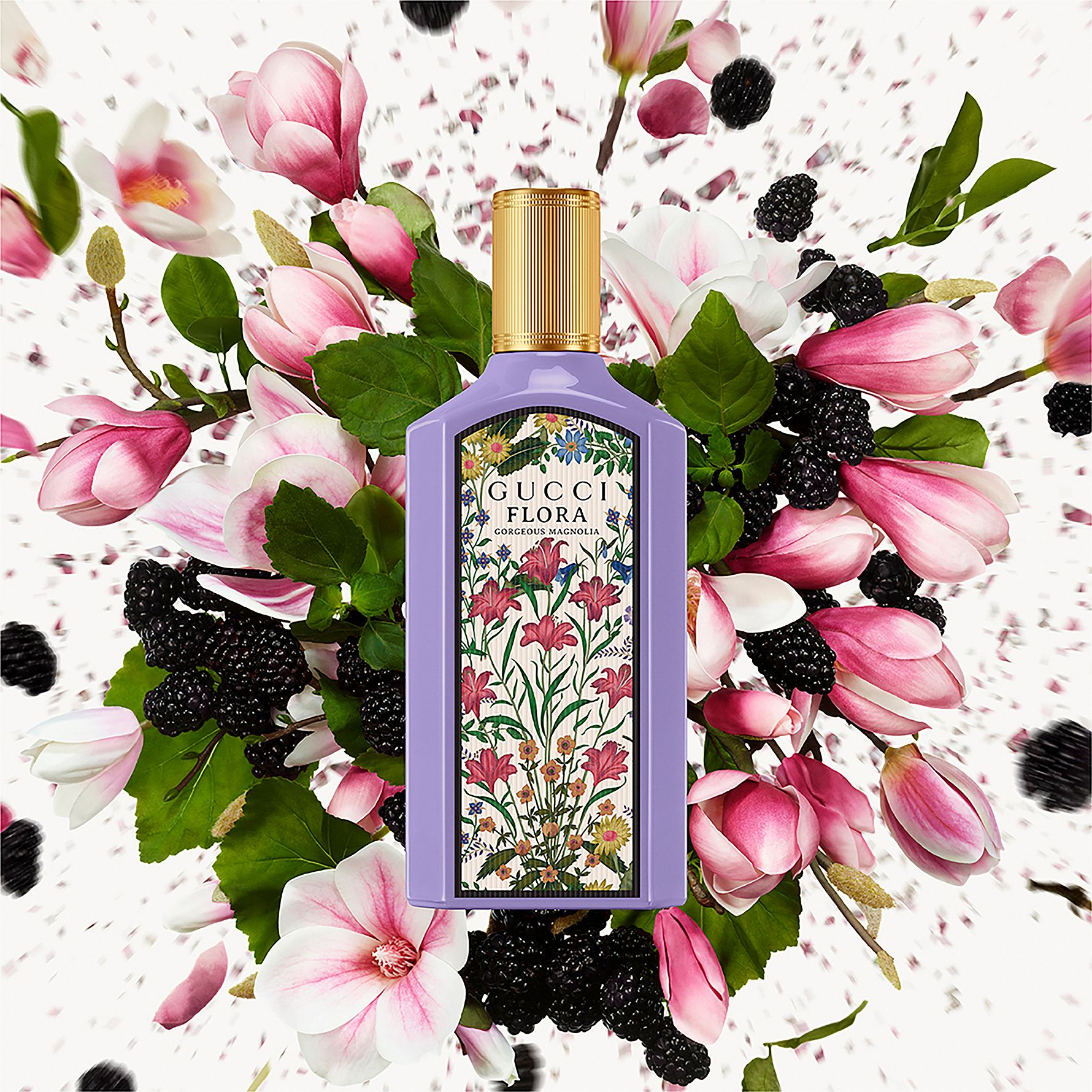 Gucci Flora Gorgeous Magnolia Eau de Parfum er en forførende og uttrykksfull duft som inviterer deg til å utforske fantasien med frihet og selvtillit. Magnolia står i sentrum – en myk og sensuell blomst som forener styrke og femininitet i en unik komposisjon. Duften åpner med et saftig blåbærakkord som gir en fruktig friskhet. I hjertet blomstrer magnoliaessens med strålende og sofistikert intensitet, mens basens patchouliessens tilfører dybde, varme og karakter. Resultatet er en fengslende og kraftfull Eau de Parfum som hyller glede, fantasi og indre styrke. Flasken i fortryllende lilla glass, prydet med det ikoniske Flora-mønsteret og en gyllen kork, symboliserer ubegrenset potensial.