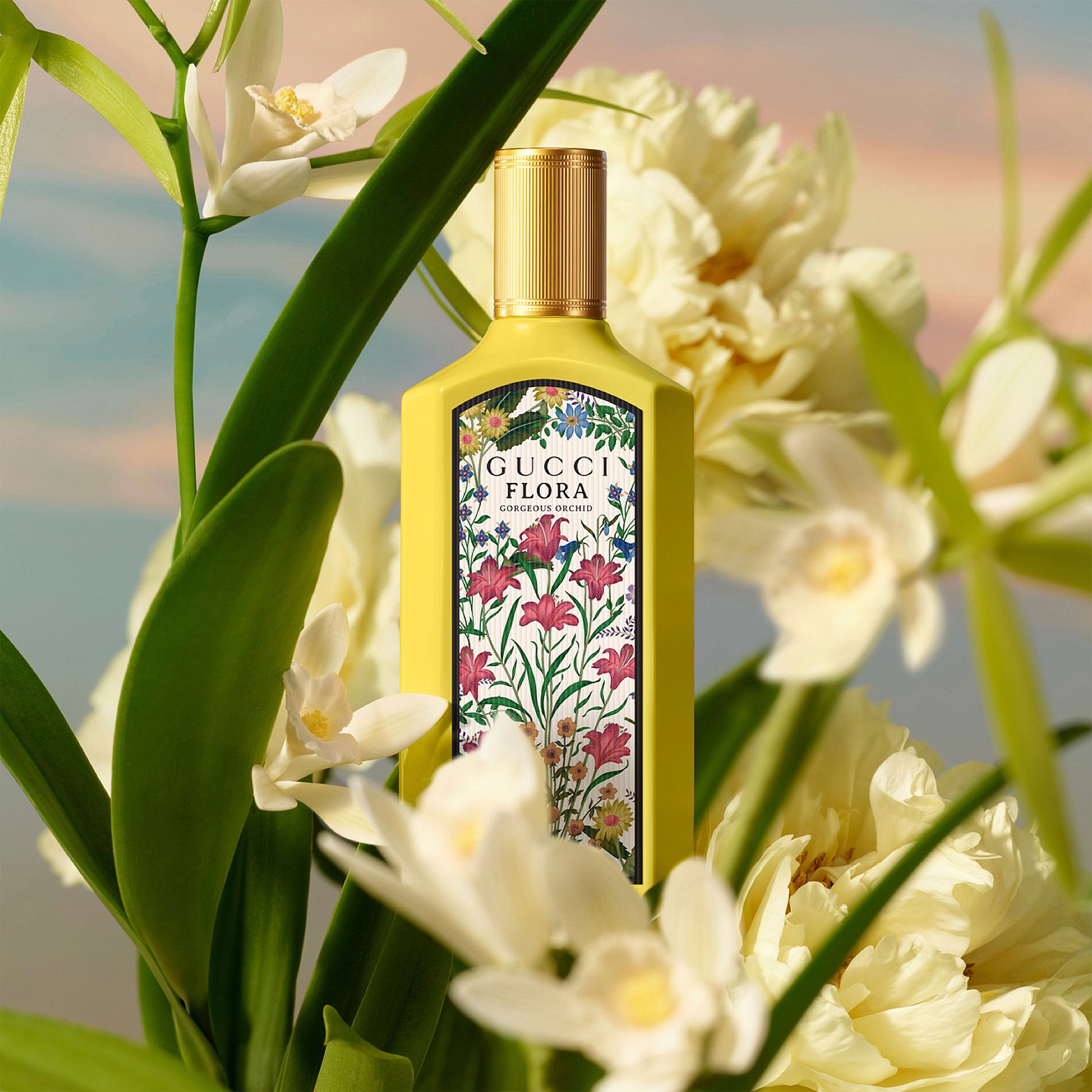 Gucci Flora Gorgeous Orchid Eau de Parfum er en kraftfull og inspirerende duft som hyller kreativitet og frihet. Her viskes grensene mellom fantasi og virkelighet ut – og resultatet er en strålende blomsterduft med uventede kontraster. Komposisjonen bygger på en unik vaniljeduo: klassisk vanilje åpner med varm sødme, mens vaniljeorkidé i hjertet tilfører en lys og sensuell blomstring. Basen avrundes med et friskt ozonakkord som gir en uventet dimensjon av luftig friskhet. Sammen skapes en moderne og fengslende tolkning av en floral gourmandparfyme – rik, men samtidig oppkvikkende. Den strålende gule flasken, prydet med det ikoniske Flora-mønsteret og en gyllen kork, fanger energien og styrken i duften – en invitasjon til å leve fritt og uttrykksfullt.