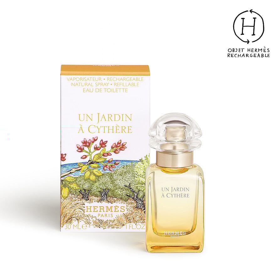 Hermès-parfymøren Christine Nagel står bak denne eau de toilette kalt Un Jardin à Cythère. Den er som en overraskende hage, verken grønn eller frodig, men … blond. En eau de toilette som uttrykker en olfaktorisk søken gjennom Peloponnes og til Kythira, en svært godt bevart gresk øy som har inspirert mange kunstnere.