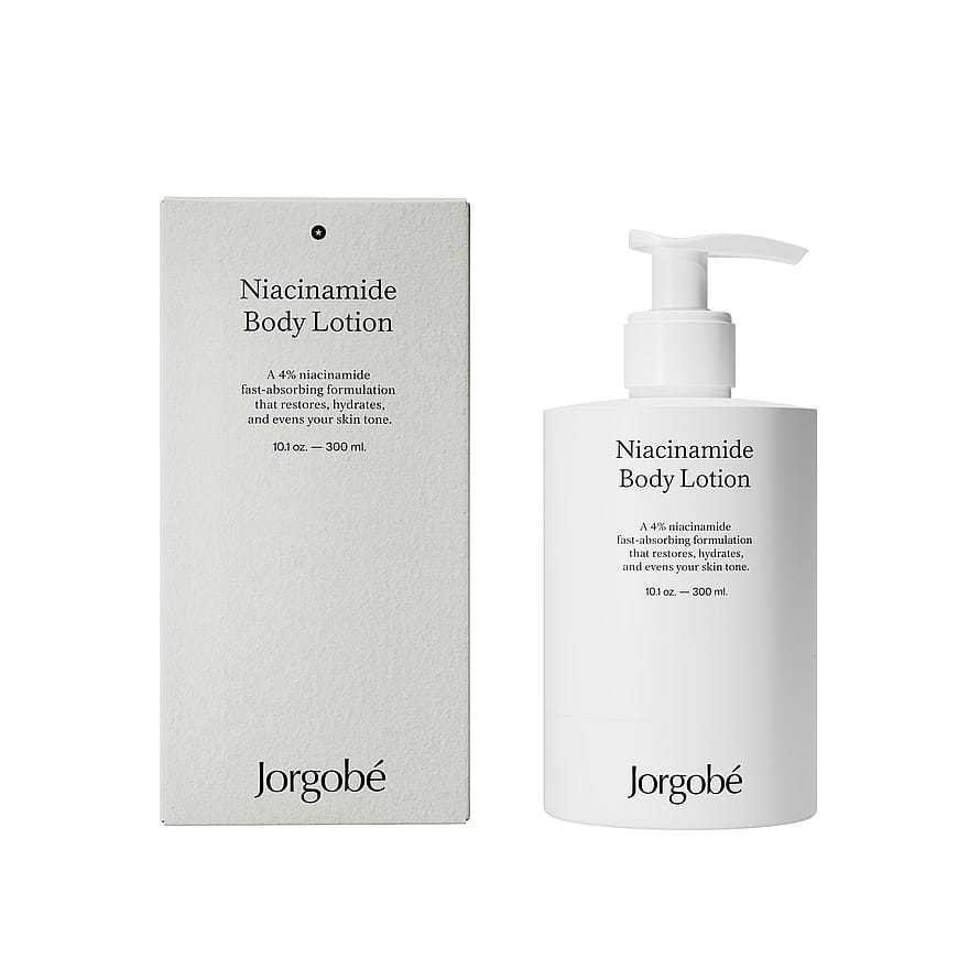 Gjenopprett og reparer huden din med Jorgobé Niacinamide Body Lotion – en hurtigabsorberende bodylotion med en konsentrasjon på 4 % niacinamid. Niacinamid hjelper til med å holde på fuktigheten i huden og jevner ut hudtonen, mens vitamin A og panthenol fremmer hudens elastisitet. Huden blir hydrert, føles strammet og får en frisk, sunn glød.