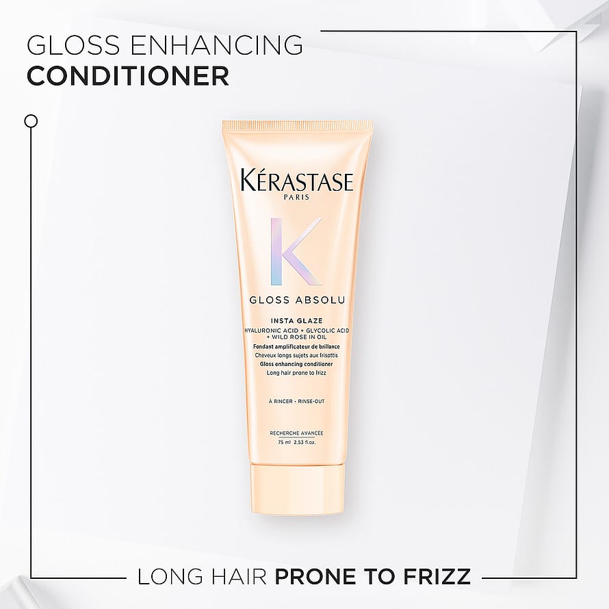 Insta Glaze fra Kérastase er en glansgivende balsam for langt hår med tendens til frizz. Med sin silkemyke og kremede tekstur tilfører den fuktighet og fylde, samtidig som den umiddelbart forvandler hårfibrene, forbedrer smidigheten, gjør håret lettere å gre og skaper en utrolig glatt og jevn overflate.