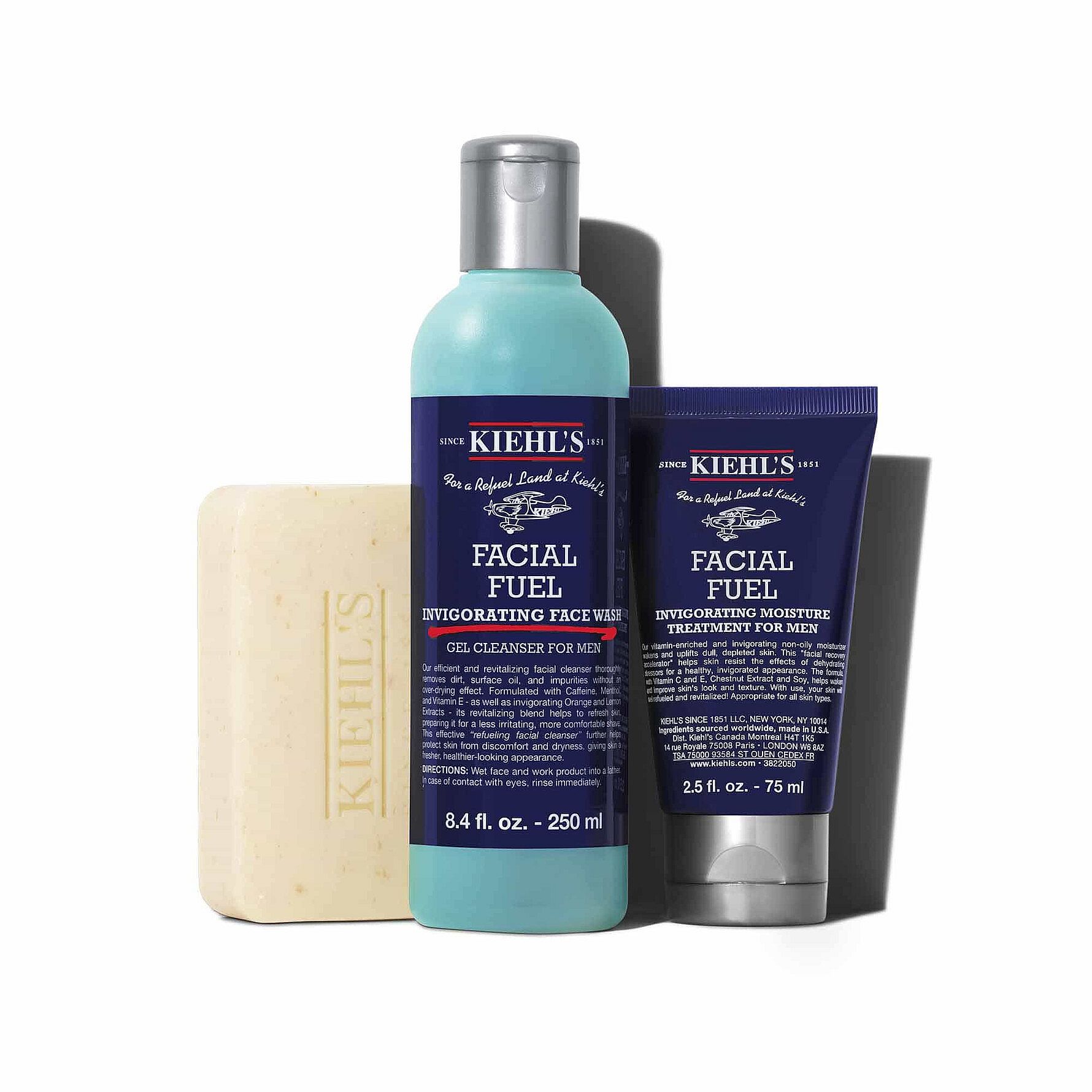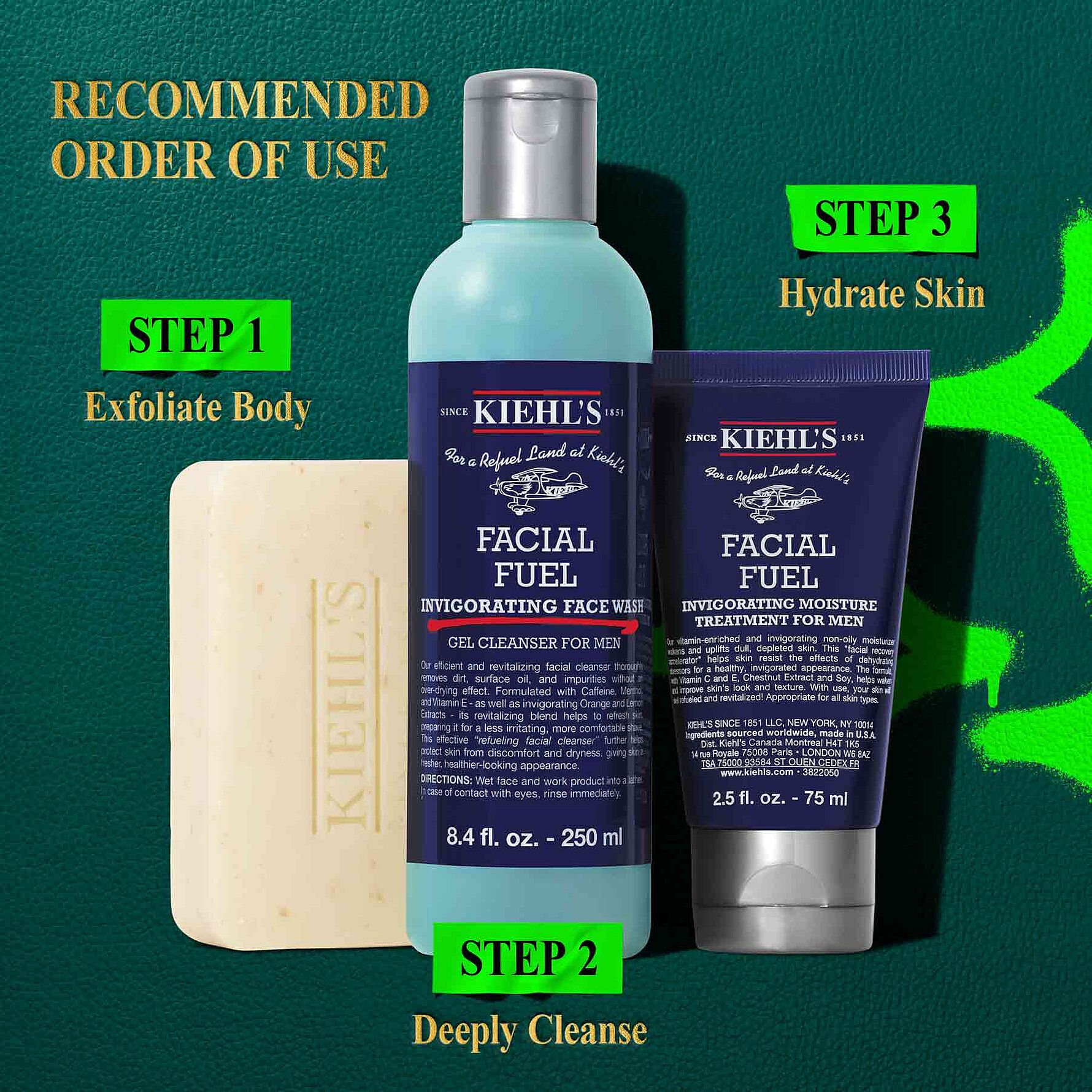 Kiehl's Holiday Sett - det perfekte startsettet for menn, med våre bestselgere Facial Fuel Energizing Face Wash 250ml, Facial Fuel Moisturizer 75ml og Body Scrub Soap Bar 200g