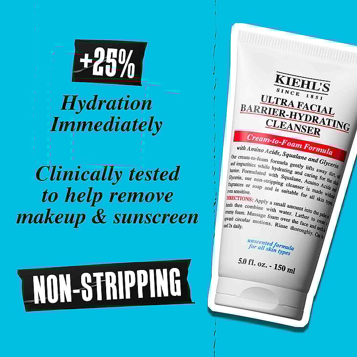 Denne ansiktsrensen fra den populære Ultra Facial-serien renser huden for urenheter samtidig som den fukter og styrker hudbarrieren. Formelen inneholder rensende aminosyrer som fjerner urenheter, og fuktighetsgivende ingredienser som squalane og glyserin som gir fuktighet til hudbarrieren og bidrar til å holde på fuktigheten. Ved påføring forvandles formelen til et tett mikroskum med små bobler som fjerner smuss, sminke og lignende, uten å tørke ut huden.