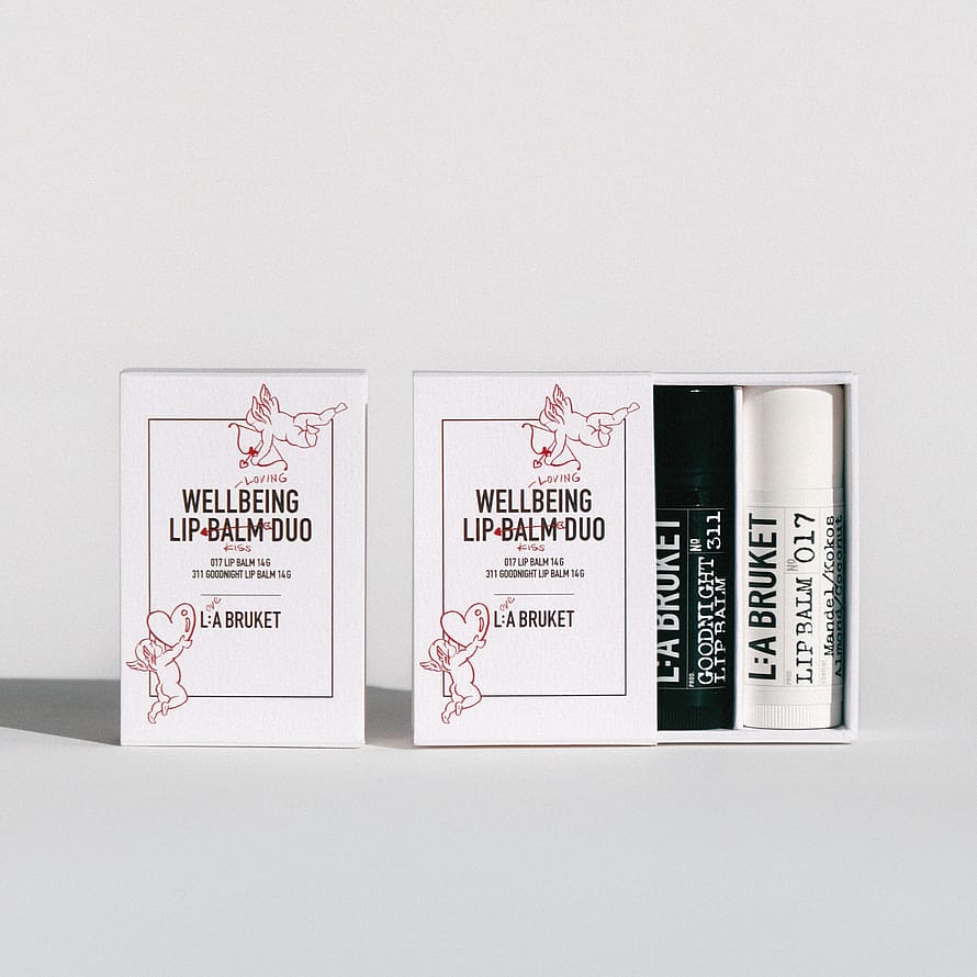 Limited Edition Lovers Lip Balm Duo er et sett for egenpleie med Original- og Goodnight-formelen. Du får en beroligende rutine som fukter, mykgjør og pleier leppene fra dag til natt.