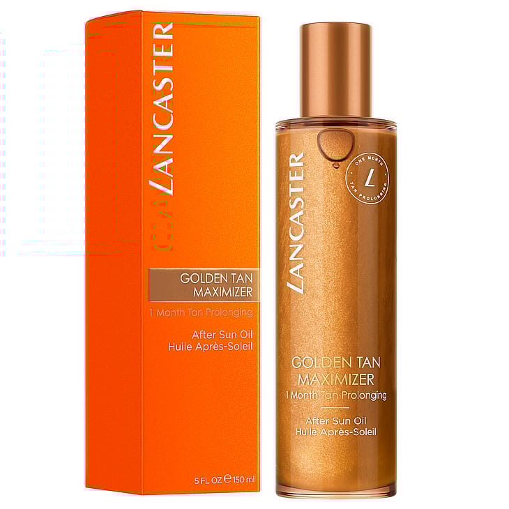 Elsker du den gyldne brunfargen din fra Lancaster? Hva om du kunne forlenge den for en endeløs sommerfølelse? Vår Golden Tan Maximizer After Sun Oil forlenger brunfargen din i opptil én måned og beroliger umiddelbart solutsatt hud. Lancasters Tan Activator Complex intensiverer melaninproduksjonen for en gyllen, jevn og langvarig brunfarge. Denne forskjønnende after sun-oljen inneholder beroligende og fuktighetsgivende komplekser som støtter hudens naturlige restitusjonsprosess etter soleksponering. Den reduserer risikoen for flassing og etterlater huden silkemyk. Beriket med seks oljer av naturlig opprinnelse smelter denne luksuriøse skjønnhetsoljen umiddelbart inn i huden, tilfører fuktighet og gjør den myk og glatt. Den skimrende teksturen fremhever en glødende, gyllen brunfarge og gir huden Lancasters ikoniske duft, egnet for sensitiv hud.