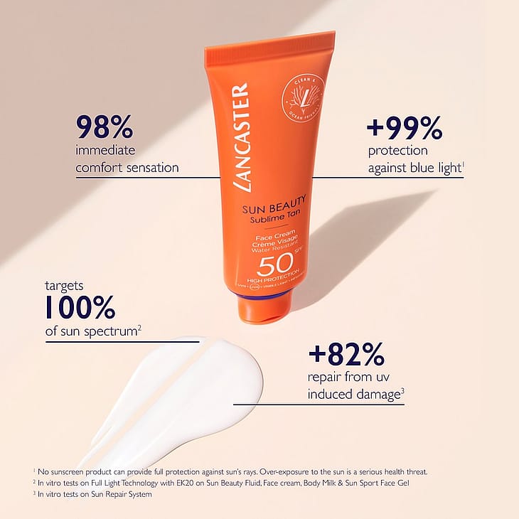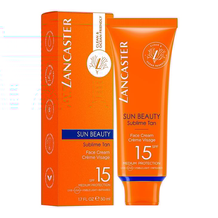 Lancaster Sun Beauty Silky Touch Cream Radiant Tan med solfaktor 15 gir bred-spektrums beskyttelse, samtidig som den bidrar til at huden utvikler en jevn og fin brunfarge. Den unike formelen kombinerer Lancasters eksklusive Full Light Technology, som beskytter mot 100% av solens stråler UVA, UVB, synlig og infrarødt lys. Gi ansiktet ditt solbeskyttelse av høyeste kvalitet!