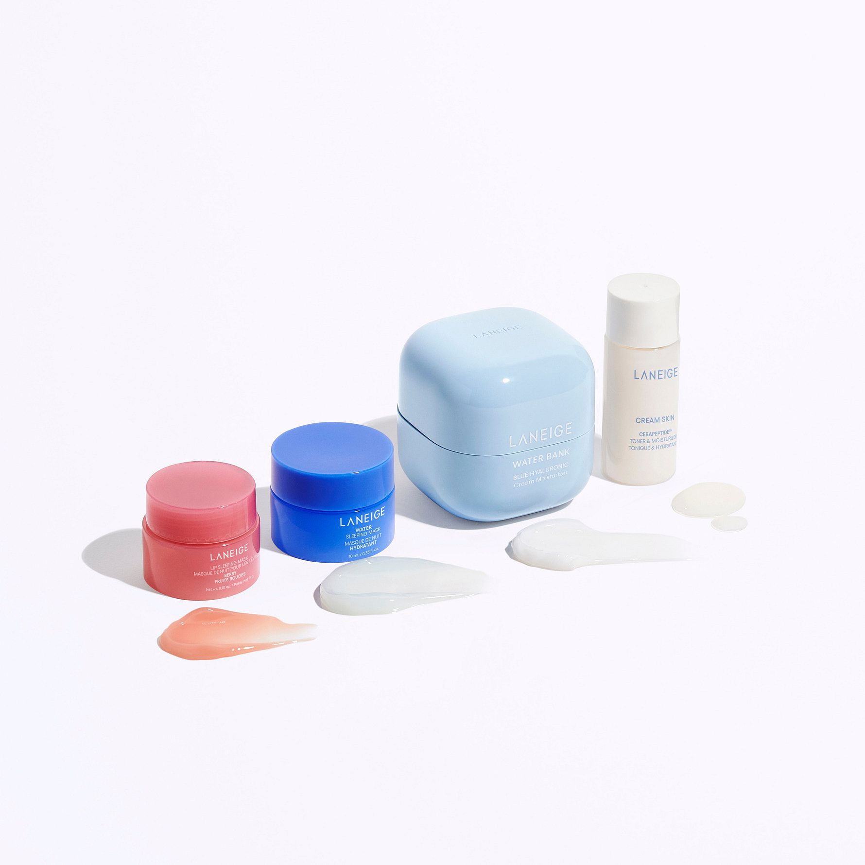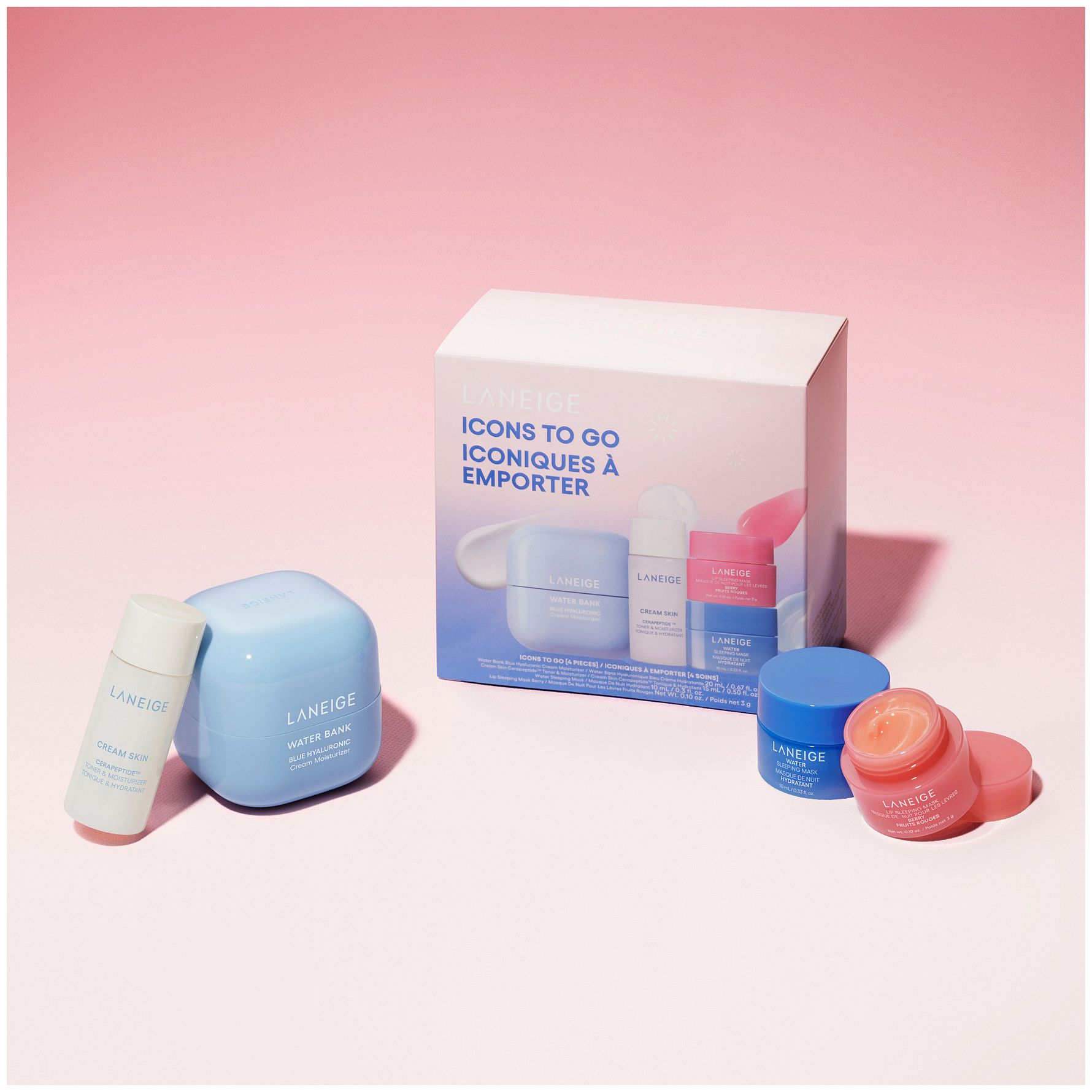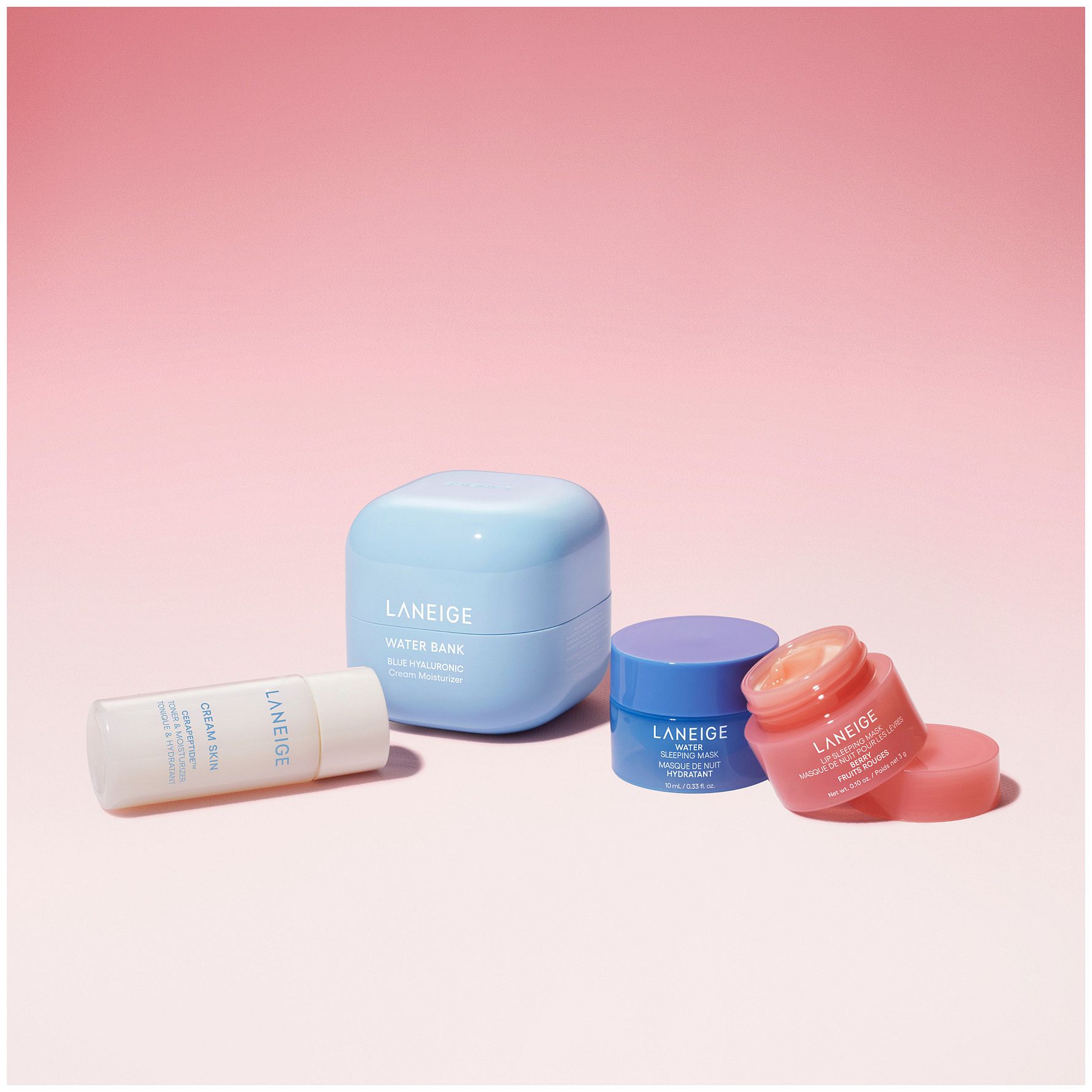 Oppgrader hudpleien med LANEIGE Icons To Get Set, et reisesett med fire bestselgere for fuktet og glødende hud. Water Bank Blue Hyaluronic Cream gir langvarig fukt. Water Sleeping Mask mykgjør og jevner ut over natten. Lip Sleeping Mask Berry pleier tørre lepper. Cream Skin Cerapeptide Toner and Moisturiser fukter, styrker og forbereder huden. Perfekt til reise, gave eller som introduksjon.