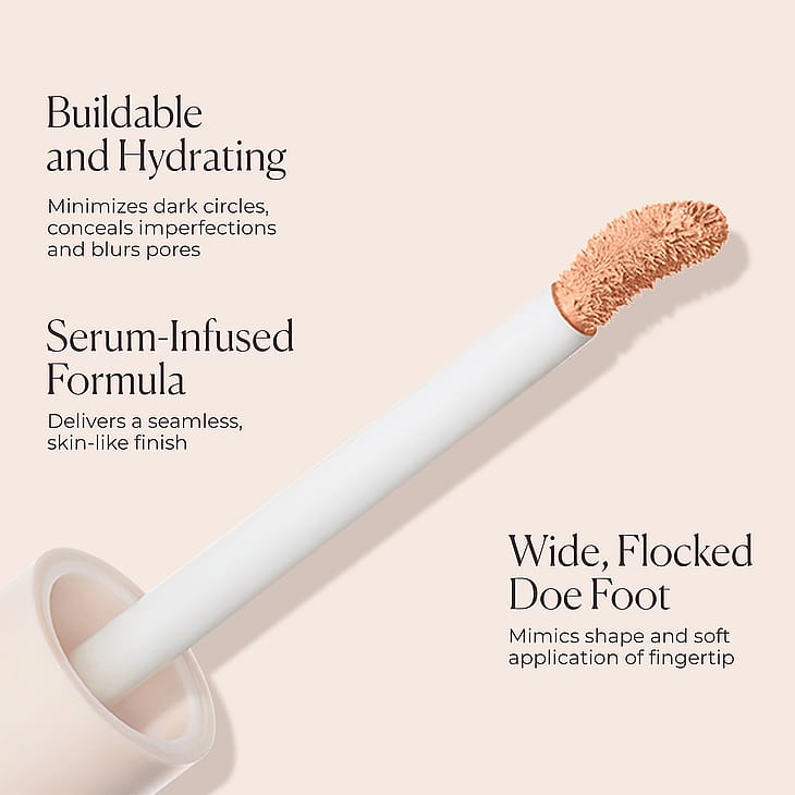 Denne serumberikede concealeren har en sømløs, byggbar dekk som gir en så naturlig finish at den nesten ikke kan synes på huden. Den fuktighetsgivende, vanntette og langvarige formelen smelter inn i huden ved påføring og dekker ujevnheter samtidig som den lysner opp hudtonen og forbedrer hudteksturen.