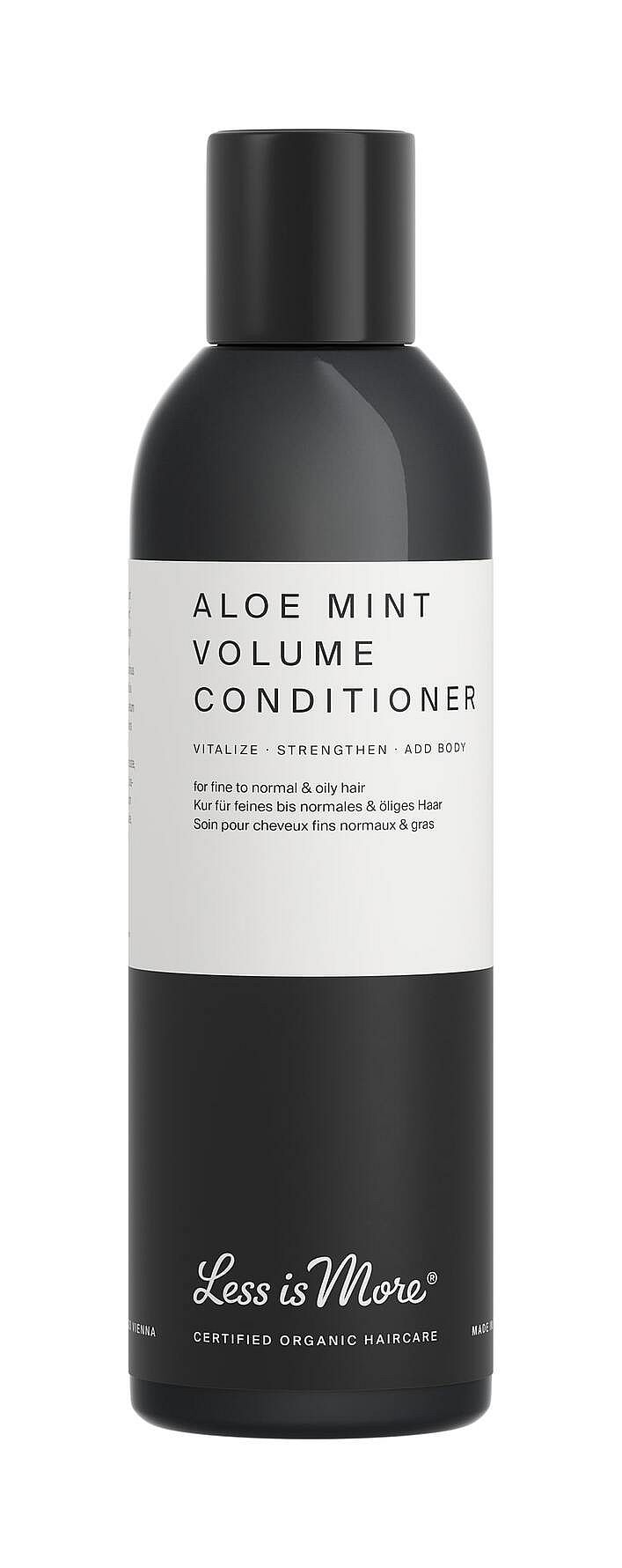 Denne eksklusive pleiende og økologiske Aloe Mint Volume Conditioner har et bioaktivt pleiekompleks som styrker og gir fylde til fint og normalt hår.