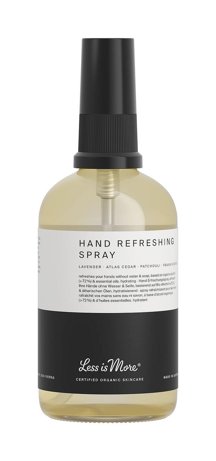 Renser og pleier hendene. Denne eksklusive og økologiske Hand Refreshing Spray er en spray for skånsom, men effektiv håndhygiene.