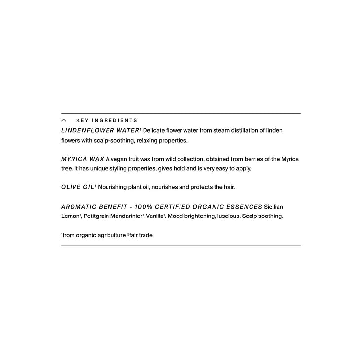 Denne eksklusive og økologiske LIM esoufflé er en kremaktig voks som gir en lettere struktur og et moderat og fleksibelt hold. Den er velegnet til å skape en uanstrengt look. Produktspesifikasjoner