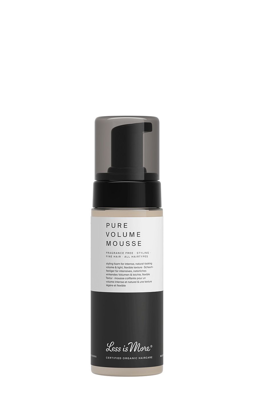 Pure Volume Mousse fra Less is More er en ultralett volummousse som gir håret maksimal fylde og et langvarig fleksibelt hold. Den tilfører tykkelse til håret og etterlater det mykt med en naturlig volum. Denne parfymefrie formelen er egnet for alle hårtyper, spesielt fint hår, og er ideell for personer med sensitiv hud eller allergi.