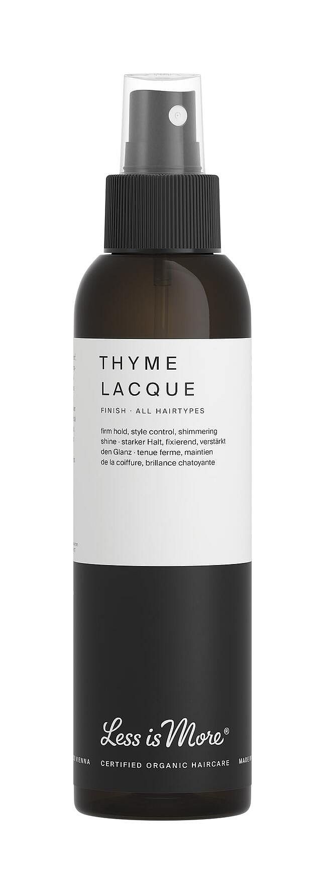Denne eksklusive og økologiske Thyme Lacque er en hårlakk med kraftig hold. Den gir et glansfullt hår og er en fuktighetsgivende naturlig spray. Produktspesifikasjoner