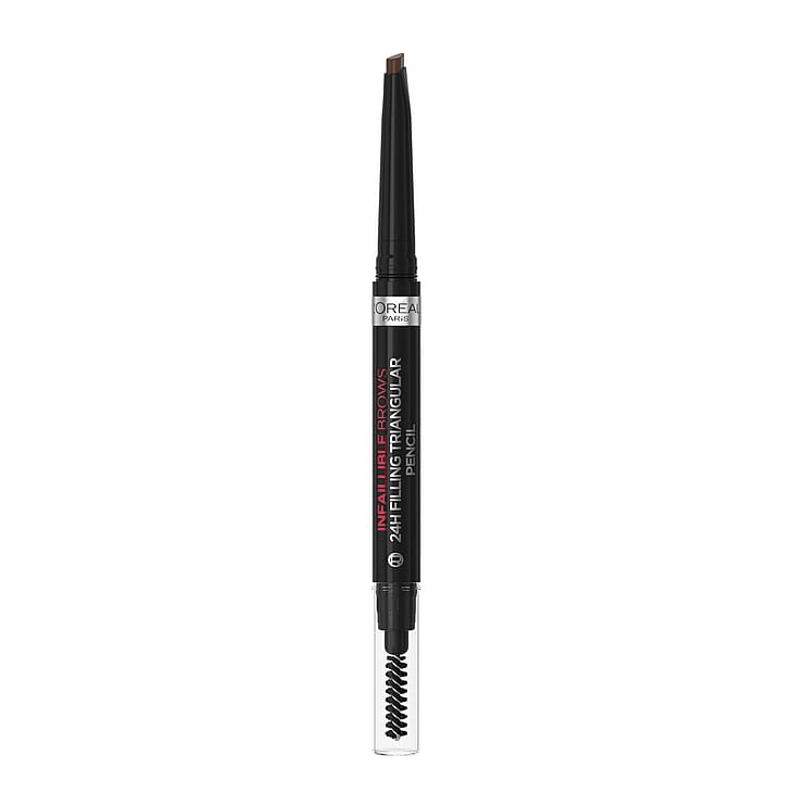 L'Oréal Paris Infaillible Brows 24H Filling Triangular Pencil lar deg definere øyenbrynene og gi dem et naturlig resultat i opptil 24 timer*. Formelen har en myk og kremet tekstur og trekanttuppen gjør det enkelt å påføre og fylle inn farge. 24H Filling Triangular pencil har en børste i andre enden for å forme brynene og style brynene. Vannfast, myk formel som ikke smitter av og som føles behagelig hele dagen.