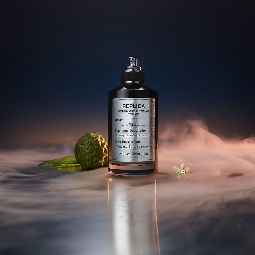 Maison Margielas REPLICA Flying formidler følelsen av grenseløs frihet – en duft som løfter deg, letter deg og tar deg med til en annen virkelighet. I hjertet ligger den surrealistiske noten Ozonic Cloud – en fantasiskapt duft bygget på ekte, raffinerte råmaterialer.